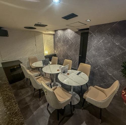 快適さとスタイリッシュなデザインが融合した空間です。エレガントな椅子と大理石のテーブルが調和し、上質な雰囲気を醸し出します。この席は、友人や同僚との集まり、ビジネスミーティング、特別なイベントなど、さまざまなシチュエーションにぴったりです。また6名~10名まで利用できるVIPルームも完備しております。