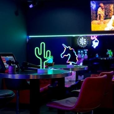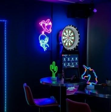 ゆったりとしたプライベート空間で、心ゆくまで友人との会話や楽しいアクティビティを楽しめます。最大20名様までご利用いただける広々としたスペースで、フロア貸切も可能です。ネオンのライトが幻想的な雰囲気を醸し出し、ダーツを楽しむだけでなく、特別な思い出を作るための理想的な場所となっています。