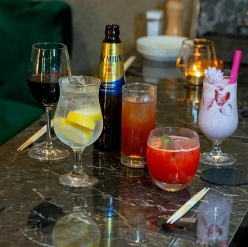 バラエティ豊かなドリンクメニューをご用意しております。フルーツをたっぷり使ったカクテルや、見た目にも美しいスムージーなど、どなたでも楽しめる飲み物が揃っています。デートや女子会などの特別なシーンにぴったりですので、おしゃれな空間で、素敵なひとときを存分にお楽しみください。
